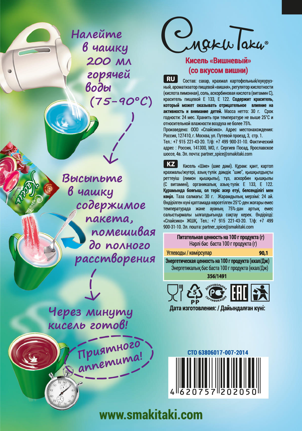 Состав: сахар, крахмал картофельный/кукурузный, ароматизатор пищевой «вишня», регулятор кислотности (кислота лимонная), соль, аскорбиновая кислота (витамин С), краситель пищевой Е 133, Е 122. Содержит краситель, который может оказывать отрицательное влияние на активность и внимание детей. Хранить при температуре не выше 25°С и относительной влажности воздуха не более 75%.