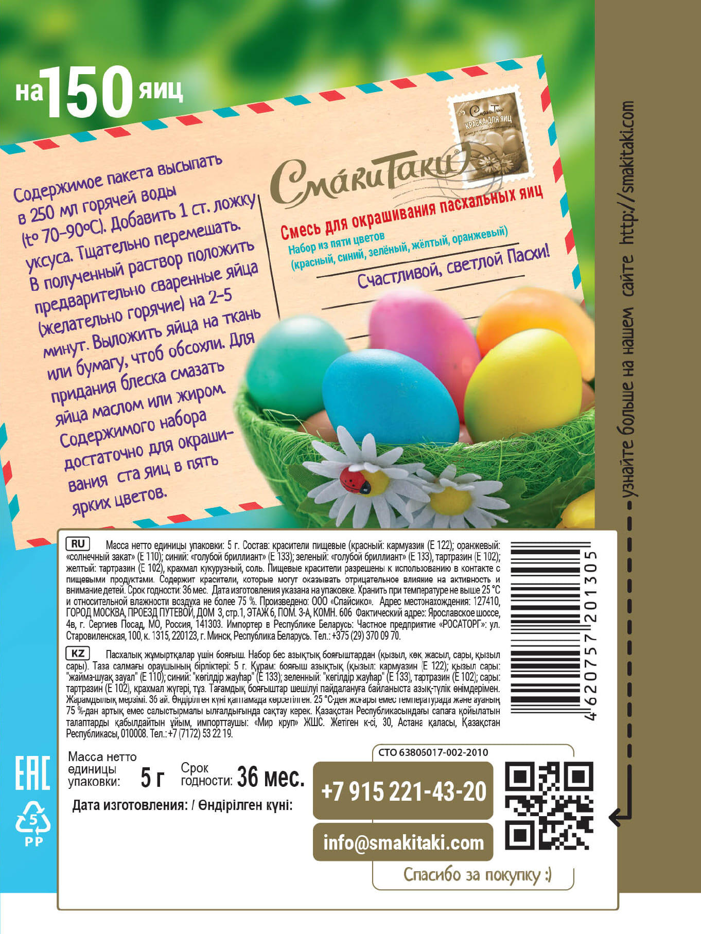 Смесь для окрашивания пасхальных яиц (5 цветов)